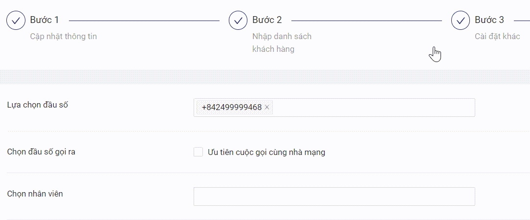 Sau khi có thông tin và danh sách khách hàng, bạn cần cài đặt một số thông tin cơ bản về cuộc gọi để có thể chạy chiến dịch hiệu quả.