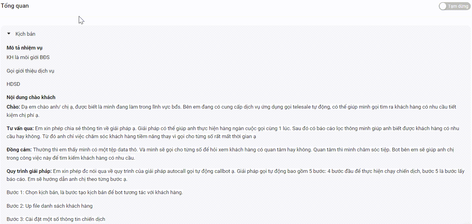Sau khi cài đặt xong, bạn hãy kiểm tra lại thông tin một lần nữa, tạo cuộc gọi demo để chắc chắn kịch bản đã phù hợp rồi kích hoạt chiến dịch.